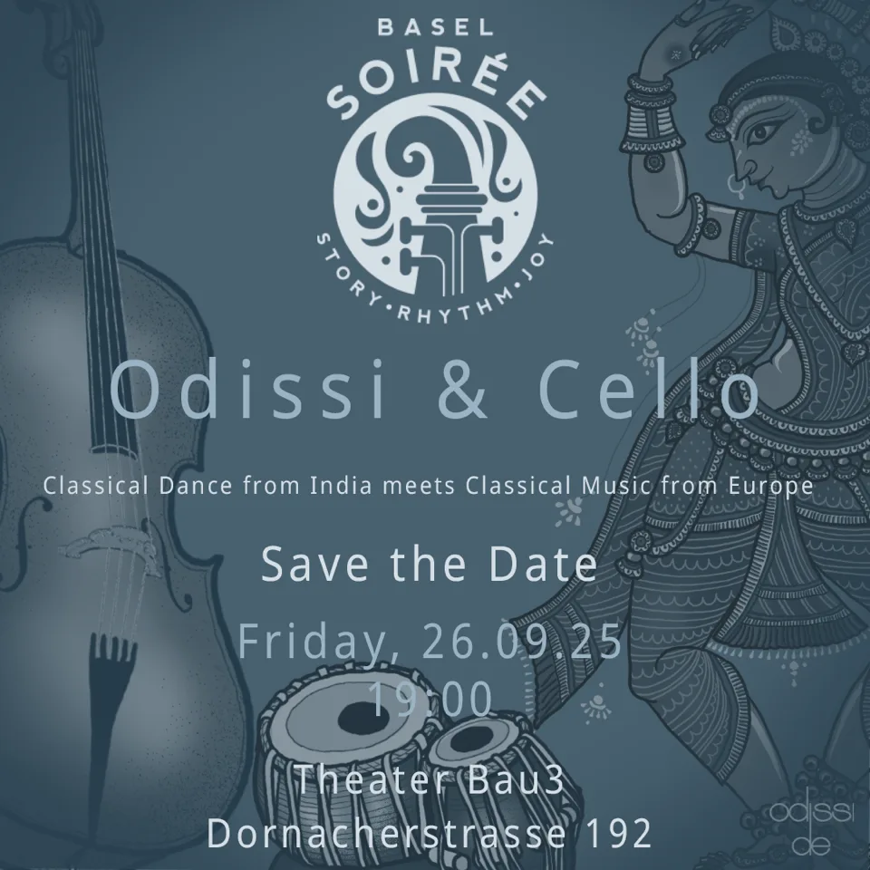 ‘Odissi meets Cello’ focuses on the interaction of dance and Cello. Traditional sounds of the East and West are performed as well as contemporary compositions, all visualised through the expressive art of Indian dance. However, according to Indian perception, every emotion and sensuality is always enhanced by an underlying spirituality. Some of the items are paired with poems. To make it into an evening’s performance it can be extended by the first half with traditional Odissi dances with recorded music and then combined with strings and percussionist live.